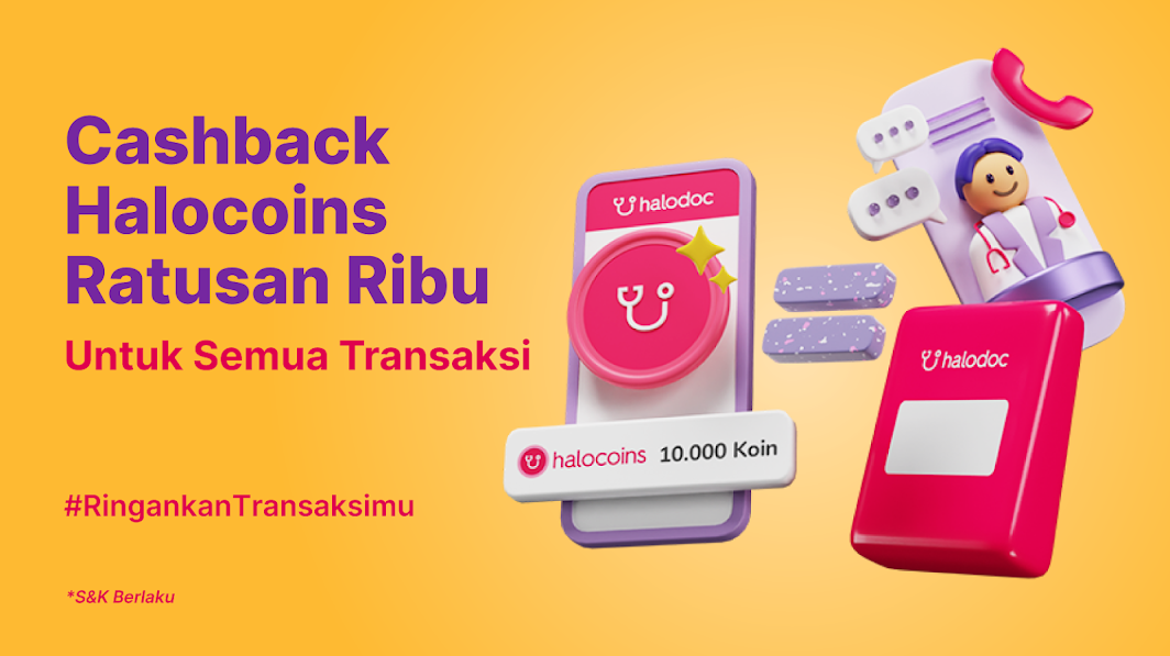 Dapatkan Halocoins saat konsultasi atau membeli obat. (1 Halocoins = Rp1)